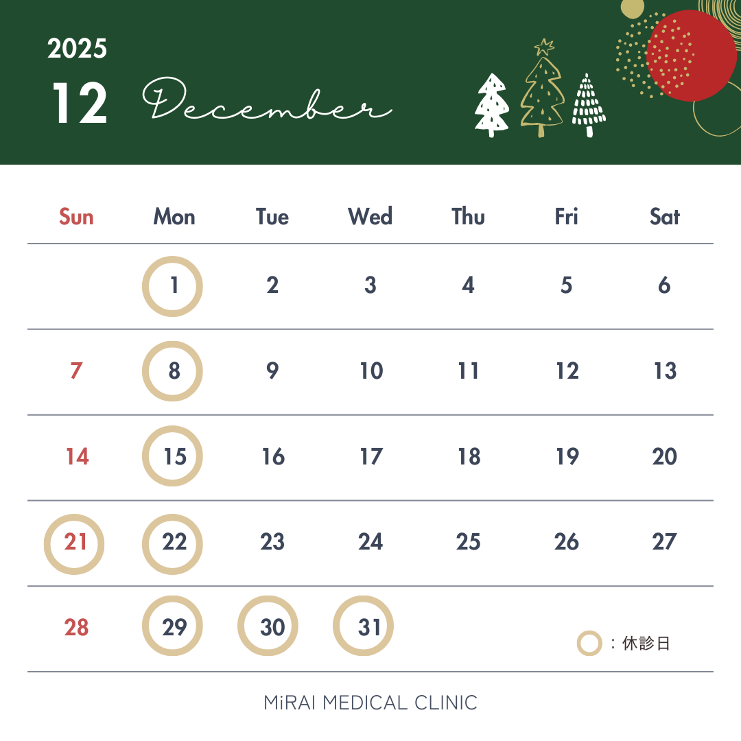 12月休診日に変更がありましたので、下記の通りお知らせいたします。